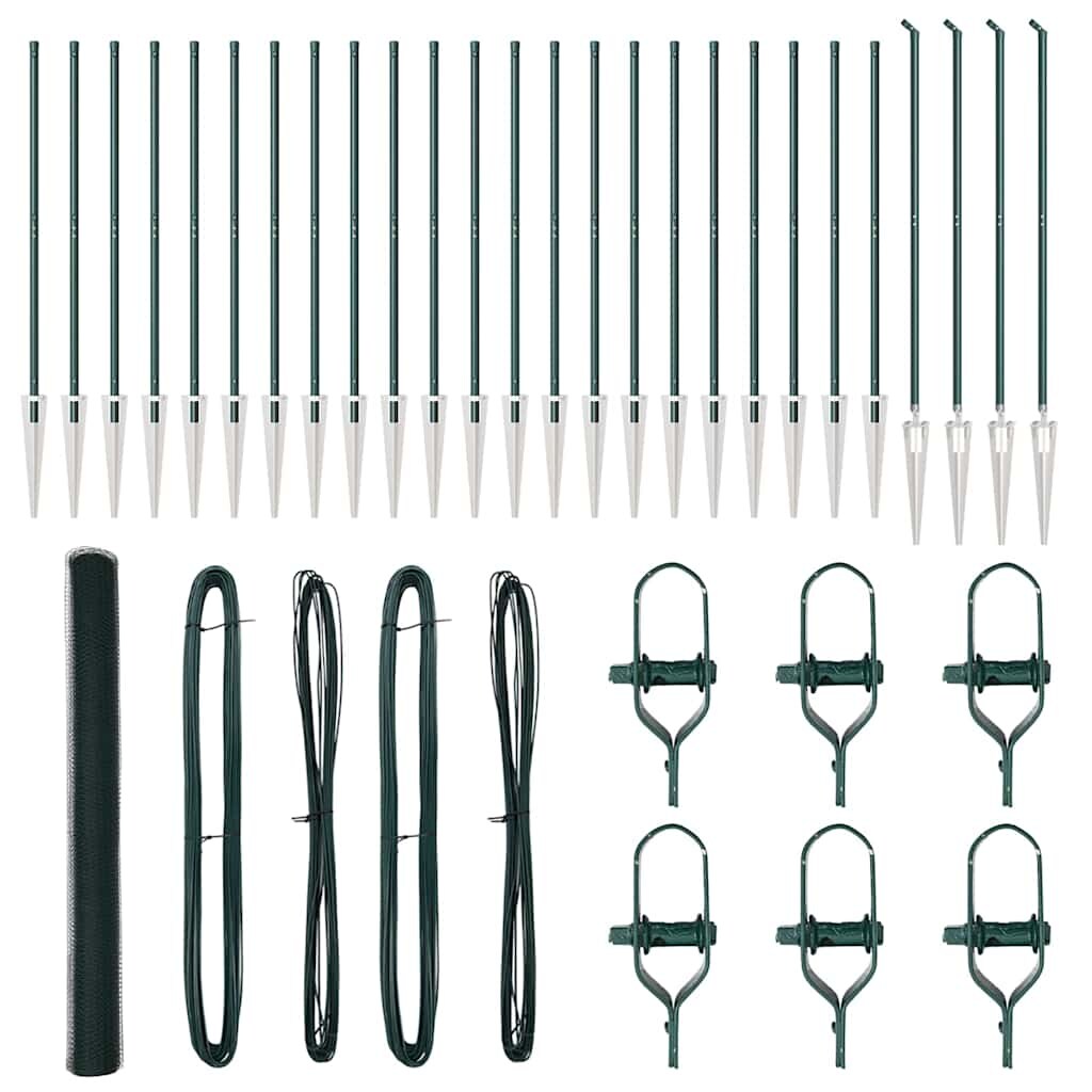 vidaXL Zaunpfosten Grün 50 x 1,5 m (13 mm Maschen) Stahl und PVC