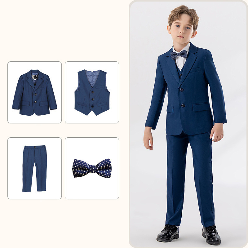 4 Pieces Ring Bearer Suit Boys' Kids Suit Blazer Vest Pants Tie Boy's Formal Suit Casual Outdoor Party Fashion Cool Basic Solid Color Pocket Buttons Blue White Wine Polyester