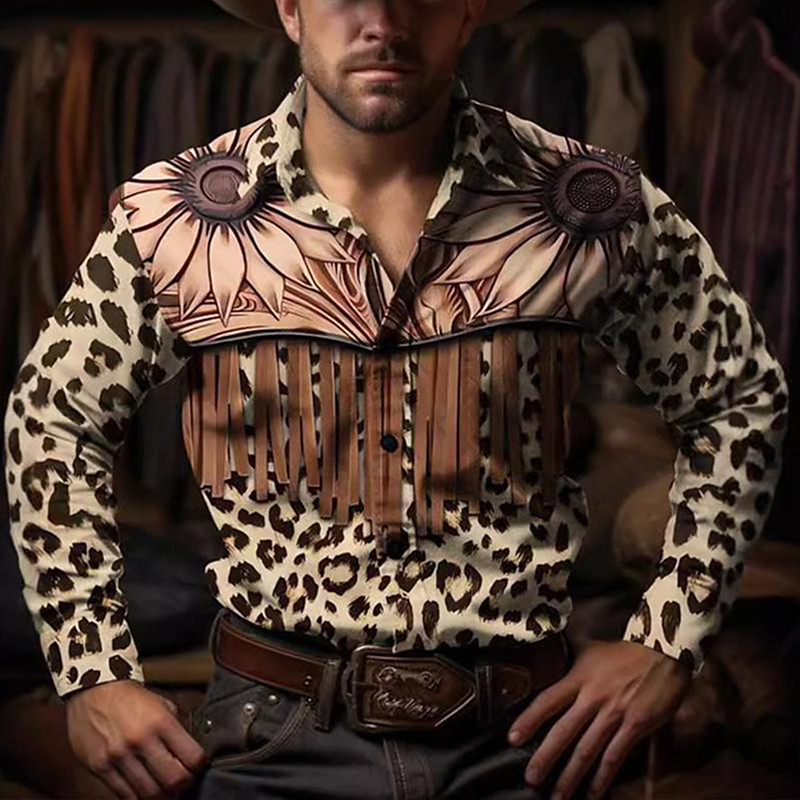 Men's Floral Graphic Prints Shirt Western Shirt Cowboy Shirt Long Sleeve Fashion Designer Casual Outdoor Daily Fall Winter Turndown Print Button-Down Black Black / Red Army Green Red Blue
