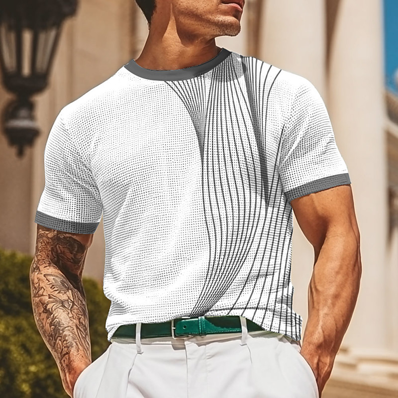 Men's Line Waffle Shirt Short Sleeve T shirt 3D Print Crew Neck Shirt Fashion Casual Comfortable Street Casual Daily Red Blue Green Summer Spring Clothing Apparel S M L XL XXL XXXL