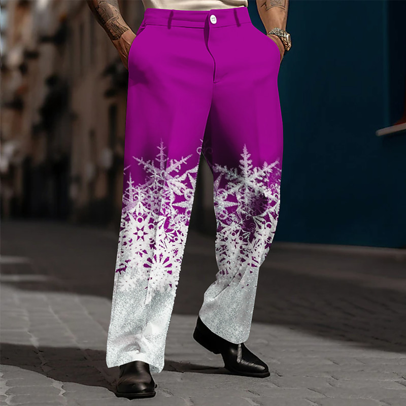 Christmas Men's Snowflake Gradient Color Trousers Dress Pants Suit Pants Mid Waist Fashion Casual Party Holiday Relaxed Fit Flat Front Dress Pants with Side Pockets Fall Winter 3D Print Red Blue