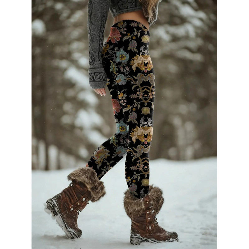 Women's Leggings Vacation Vintage Ethnic Style Full Length High Waist Graphic Abstract 3D Print Quick Dry Breathability Soft Stretchy Winter Blue Black Wine Red Spring Fall Winter Slim Fit