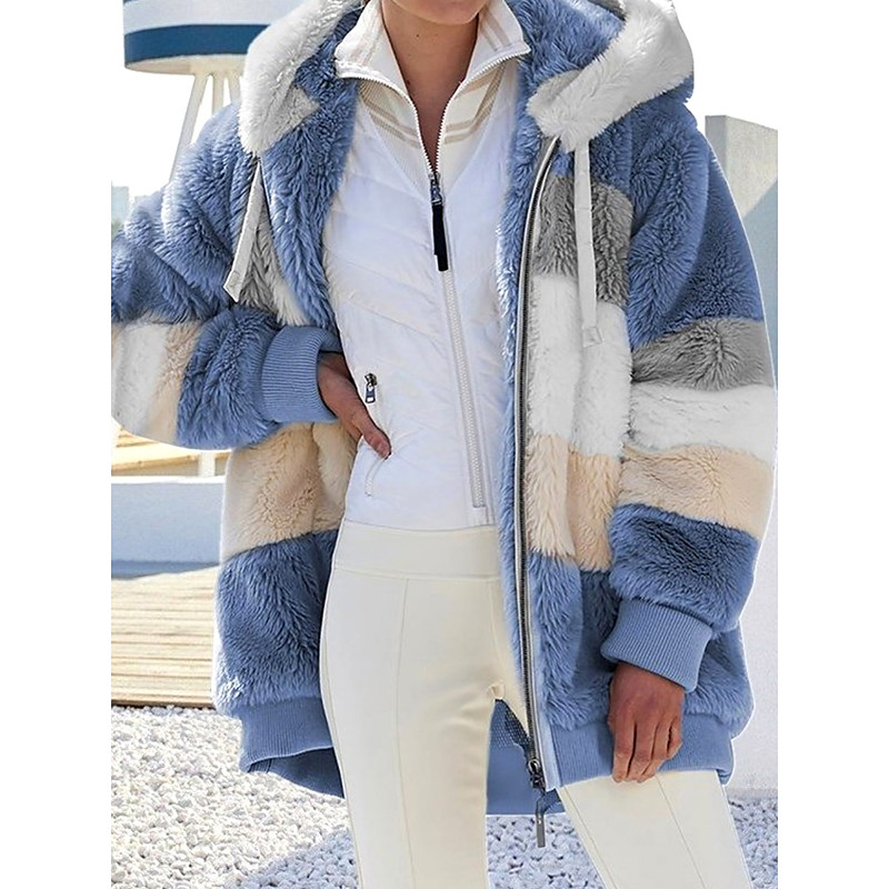 Women's Fleece Jacket Teddy Coat Hoodie Jacket Warm Breathable Zipper Pocket Fleece Lined Casual Stripe Vacation Street Daily Wear Going out Zipper Regular Hoodie Regular Fit Long Sleeve Outerwear