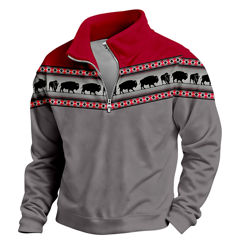 Men's Aztec Cowboy Sweatshirt Ethnic Vintage Retro Stand Collar Outdoor Gift Red Brown Green Zipper Fall Winter Designer S M L XL XXL XXXL