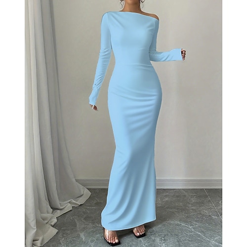 Per donna Abito Lungo Maxi Abito Abito da Ballo Vestito da Festa Elegante Moda Feste Uscire Vestibilità regolare Semplice Manica Lunga Monospalla Nero Bianco Vino Estate