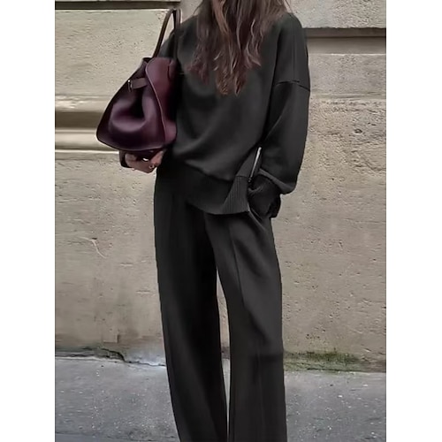 Per donna Set di Pantaloni Bolero Top Manica Lunga Dolcevita Semplice Moda Streetwear Casuale Quotidiano All'aperto Nero Vino Grigio Primavera Vestibilità comoda