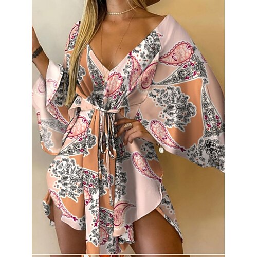 Per donna Mini abito Vestito Casual Abito a trapezio Moda Moderno Quotidiano Vacanza Uscire Vestibilità comoda Floreale Tropicale Manica Lunga Scollo a V Nero Bianco Rosa Arancione Estate Primavera
