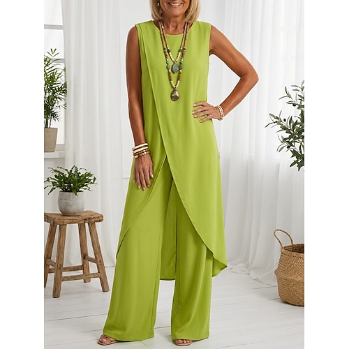 Per donna Set di Pantaloni Senza Maniche Girocollo Semplice Arricciato Patchwork Elegante Moda Streetwear Casuale Quotidiano All'aperto Nero Verde chiaro Rosso Estate Vestibilità comoda