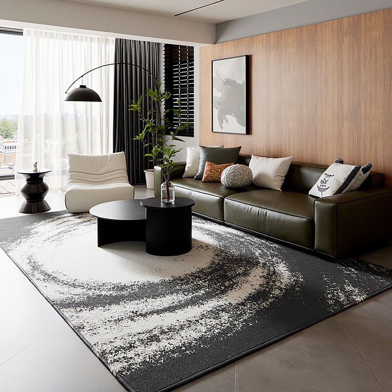 Vintage Area Rug For Living Room And Bedroom Thick Loop Velvet Soft Non-Slip Washable Carpet Waterproof Stain Resistant Easy Clean Black Retro Floor Mat Home Decor