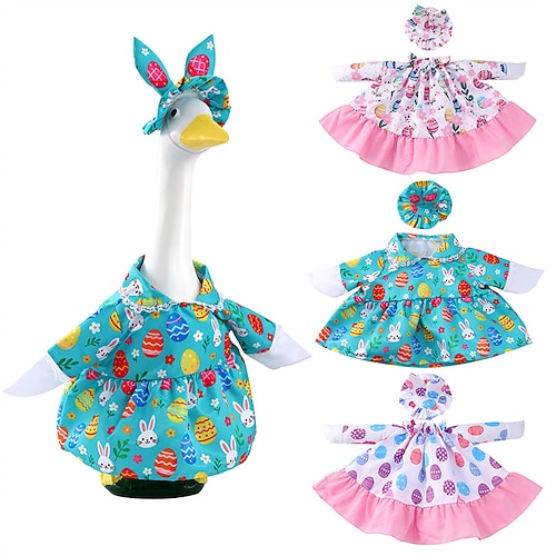3 Sets Veranda-Gänse-Outfits für die Gartengans, Frühlings-Garten-Gänsekleidung mit Hasenohrenmütze, Osterei Kleid mit Hasenmuster für die Gartendekoration, Standardgröße für festliche