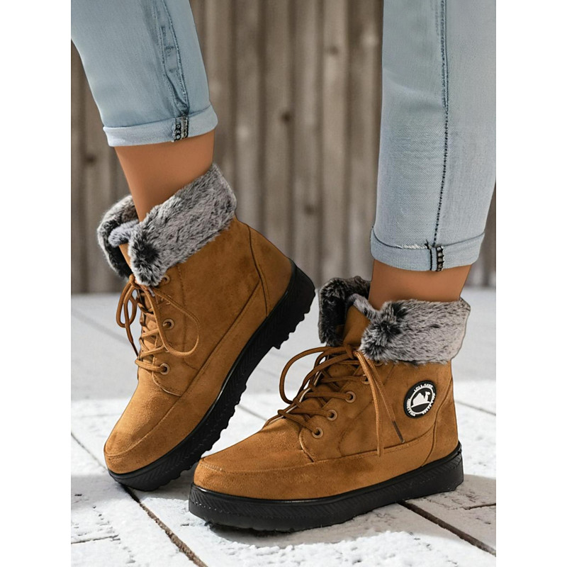 Women's Camel Faux Fur-Lined Ankle Boots – Warm and Stylish Winter Footwear for Cold Weather, Casual Outings and Cozy Indoor Wear