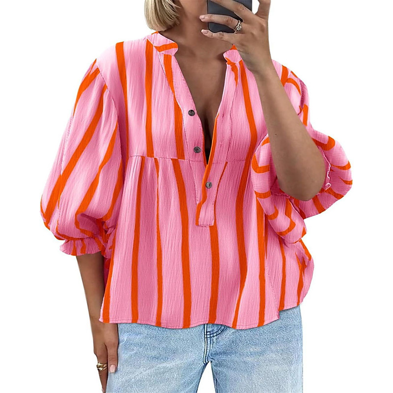 Women's Shirt Blouse Dressy Tops Plain Striped Elegant Vintage Ladies Long Sleeve Puff Sleeve V Neck Regular Tops Daily Work Holiday Ruched Patchwork Buttons Blue Yellow Pink Green Fall Winter