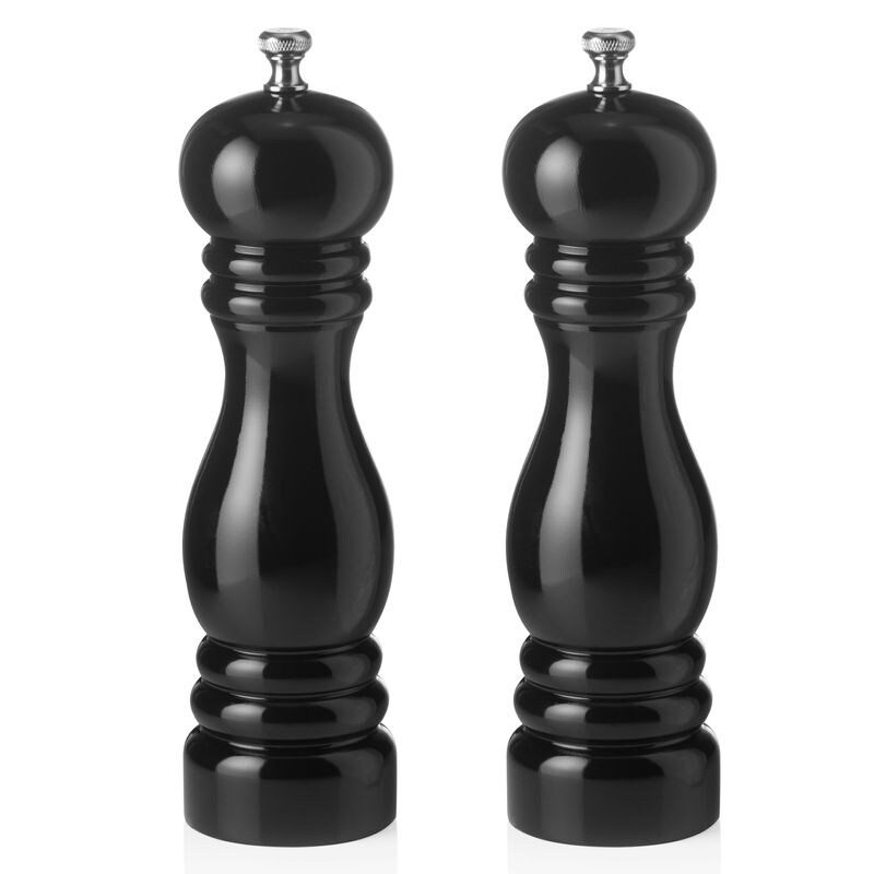 Salzmühle und Pfeffermühle schwarz glänzend, 20 cm, Gummibaumholz, Classic Mill 2 tlg. Set