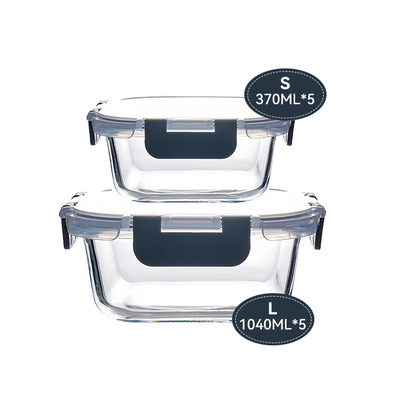 JORDAN&JUDY Black Snap-Lock Food Container 10-Piece Set, High Borosilicate Glass (1040ml*5 + 370ml*5), Sealed Lids, Office Lunch Box Set
