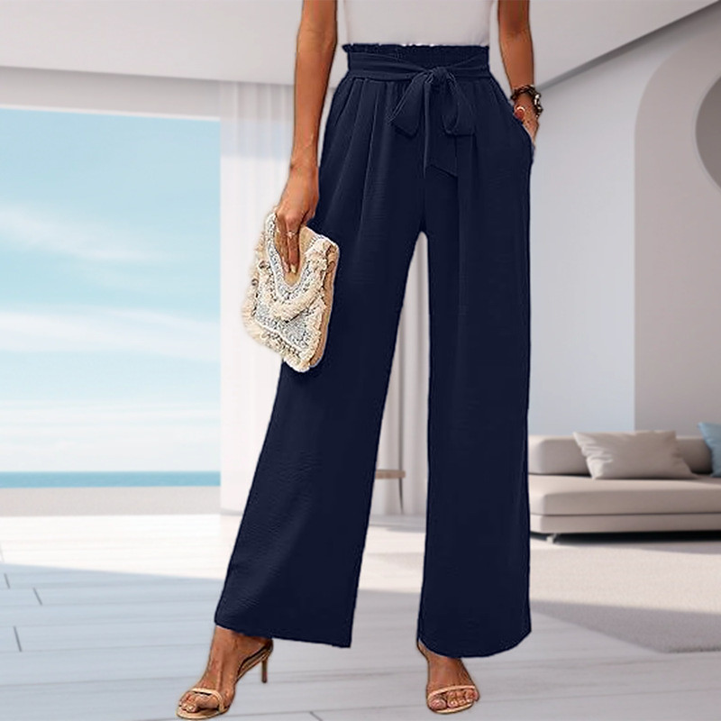 Women's Wide Leg Slacks Streetwear Casual Full Length Natural Plain Pocket Elastic Waist Comfortable Outdoor Vacation Going out Grey Black White Sky Blue Fall Regular Fit