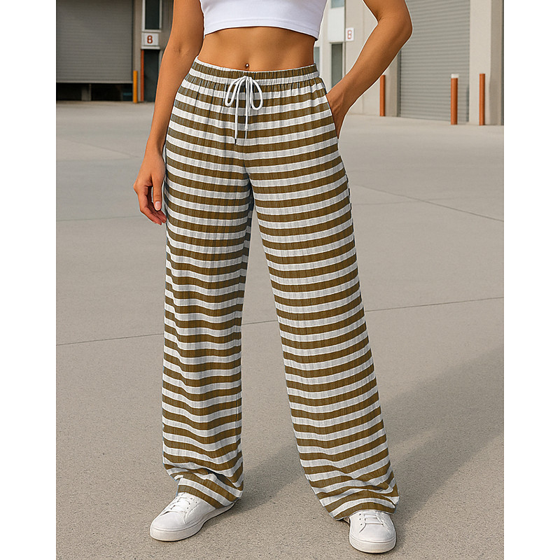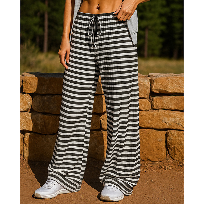 Women's Sports Lounge Pants Casual Straight Leg Pants Drawstring High Waist Bottoms Athleisure Gym Workout Fall Lightweight Gym Workout Outdoor Running Loose Fit Sportswear Activewear Stripes Black