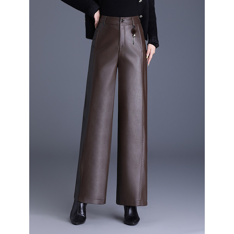 Women's Wide Leg Dress Pants Streetwear Stylish Full Length Natural Plain Pocket Elastic Waist Comfy Formal Office Street claret Dark-Gray Yellow Coffee Fall Regular Fit