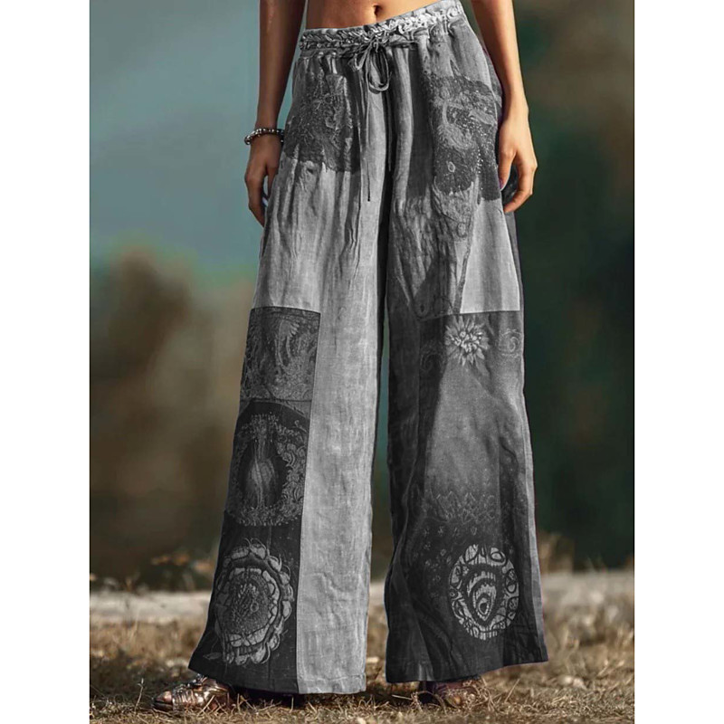 Women's Wide Leg Chinos Vacation Vintage Ethnic Style Full Length High Waist Drawstring Patchwork Printing Inelastic Formal Vacation Street Blue Violet Grey Green Summer Spring Fall Winter Loose Fit