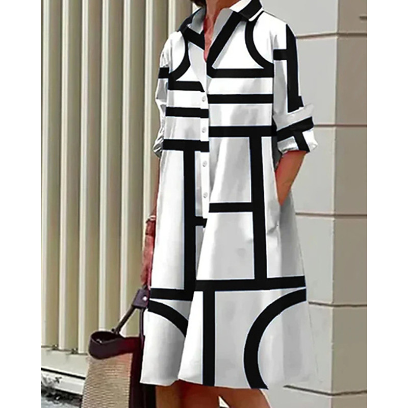 Women's Midi Dress Shirt Dress Casual Dress Fashion Modern Daily Beach Weekend Regular Fit Geometric Long Sleeve Shirt Collar Blue Black Yellow Wine Spring Fall
