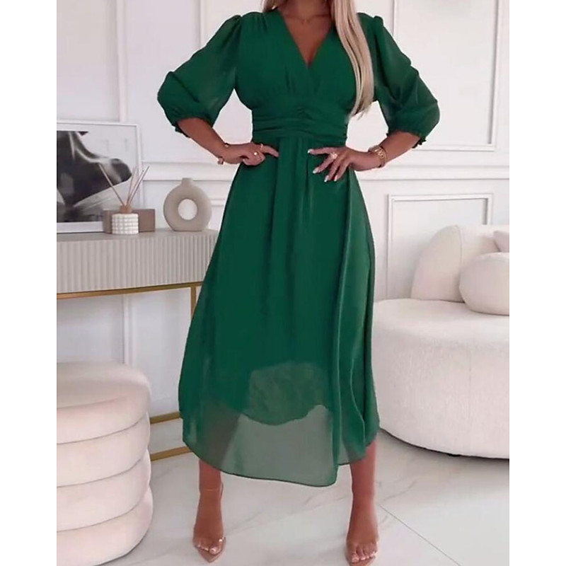 Women's Midi Dress Black Dress Casual Dress Elegant Fashion Modern Daily Going out Weekend Regular Fit Plain 3/4 Length Sleeve Crew Neck Black Wine Green Khaki Spring Fall Winter