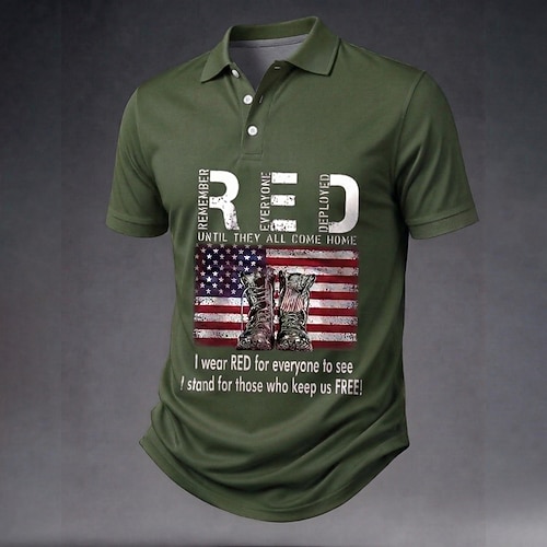 4. Juli 2026 250. Herren Amerikanische US-Flagge Poloshirts Kurzarm Polo-Shirts Hemden mit Kragen Lässig Outdoor Streetwear Athleisure Knöpfe Atmungsaktives Gewebe Sommer Frühling Blau Rote Armeegrün