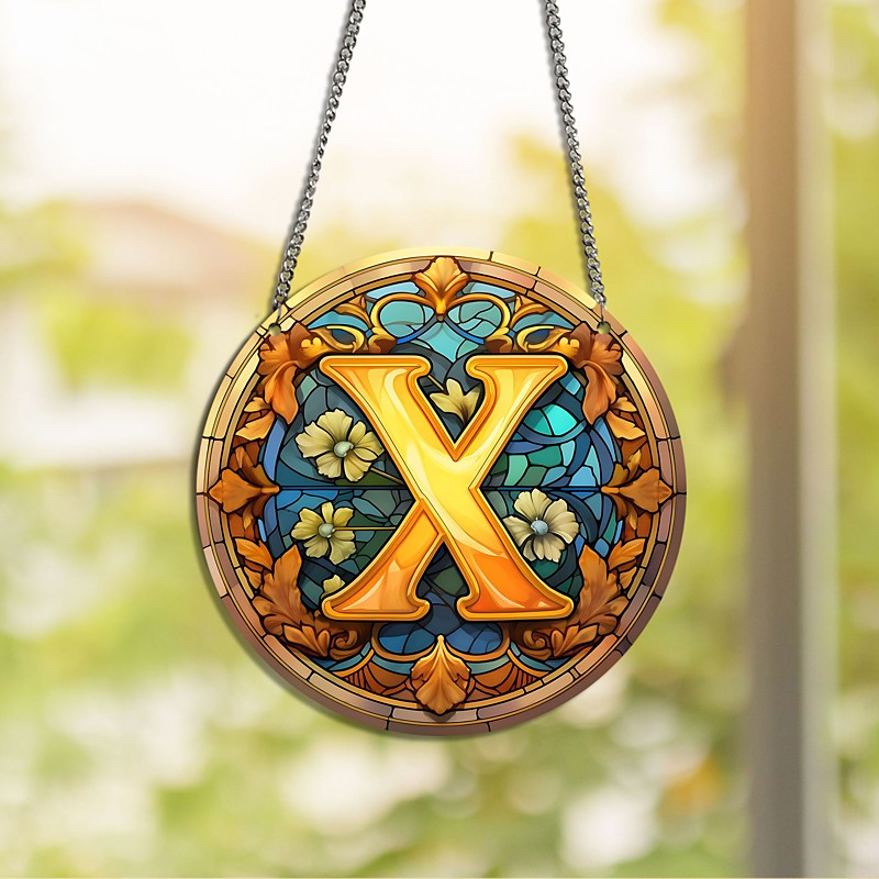 Alphabet Stained Window Hanging Suncatcher For Windows Panels Sun Catcher Autumn Ornament Decoration Alphabet Memorial Gift For Friend, Christmas Xmas Gift