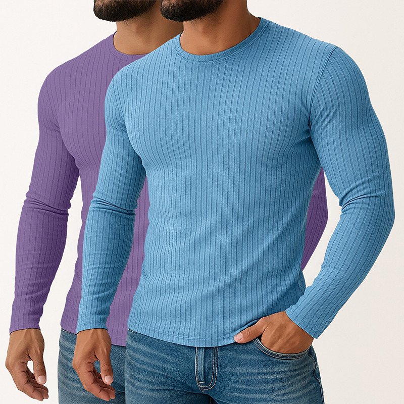 Men's Shirt V Neck Tee Long Sleeve Shirt Bamboo T-shirt Long Sleeve V Neck Spring Fall Solid Color Patchwork Daily Casual Street Style Fake two piece Outdoor Street Causal Light Blue Light Green
