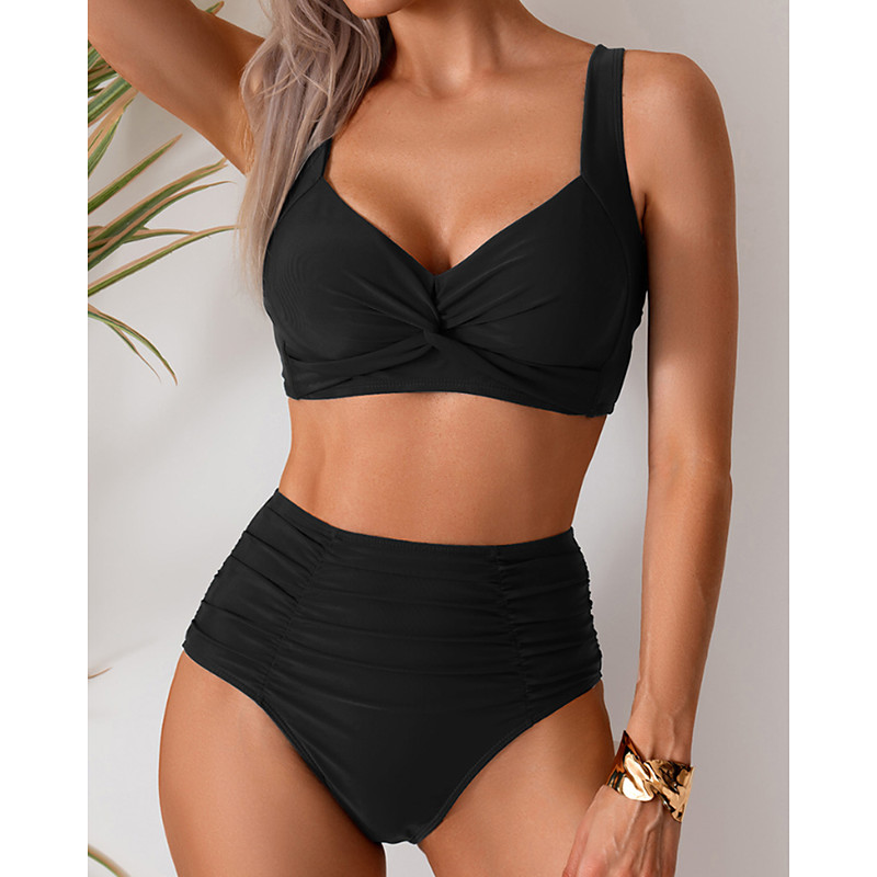 Women's Swimwear 2 Piece Cheeky Swimsuit Ruched Backless Vacation Beach Wear Plain V Neck Sleeveless Bathing Suits