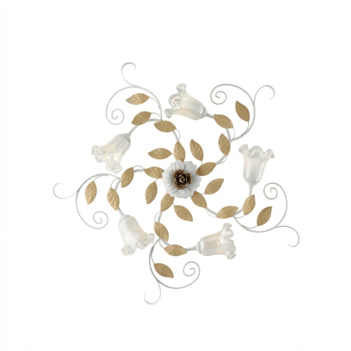 Bonetti Illumina - Cesto - Shabby Deckenleuchte aus weiß lackiertem Eisen 5 Lichter H.17 - Ø80 - BL274-PL5-BCO