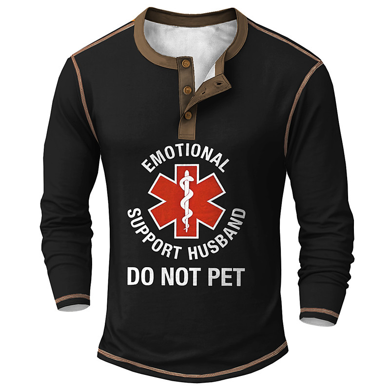 Men's Funny Long Sleeve Henley T-Shirt - Emotional Support Husband Do Not Pet Graphic Tee