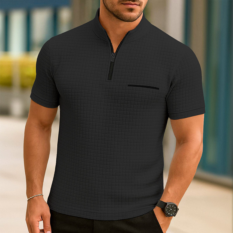 Men's Waffle Polo Shirts Zip Polo Casual Holiday Quarter Zip Short Sleeve Fashion Basic Plain Quarter Zip Summer Spring All Seasons Black White Navy Blue Orange Waffle Polo Shirts
