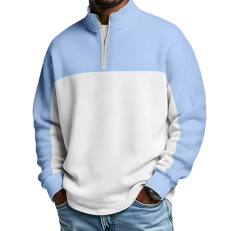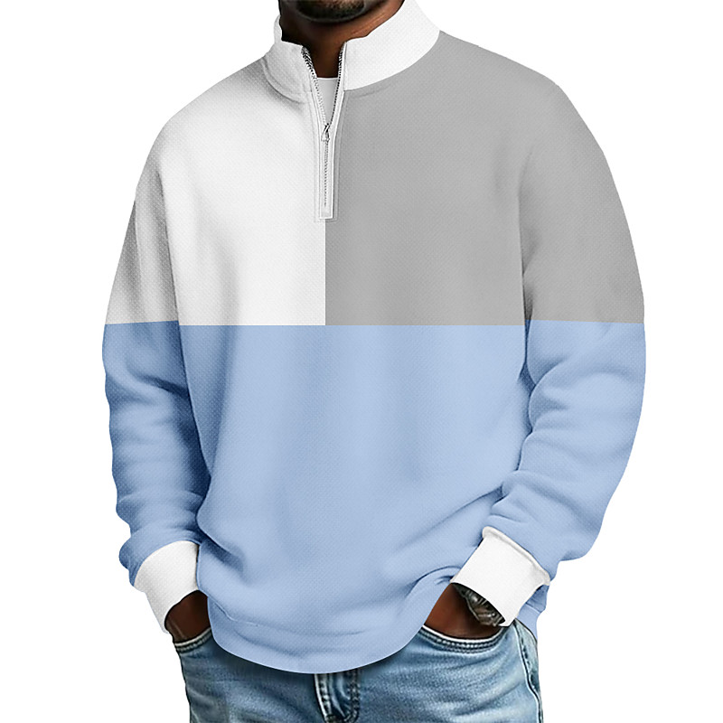 Men's Color Block Zip Polo Shirts Long Sleeve Polo Shirts Grandad Collar Casual School Athleisure Holiday Daily Wear 3D Print Quarter Zip Polo Spring Fall Winter Blue Navy Blue Sky Blue