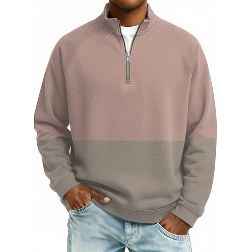 Per uomo Blocco di colori Polo con zip Manica Lunga Magliette polo Colletto alla coreana Casual Scuola Athleisure Ferie Abbigliamento quotidiano Stampa 3D Polo con cerniera a un quarto Primavera