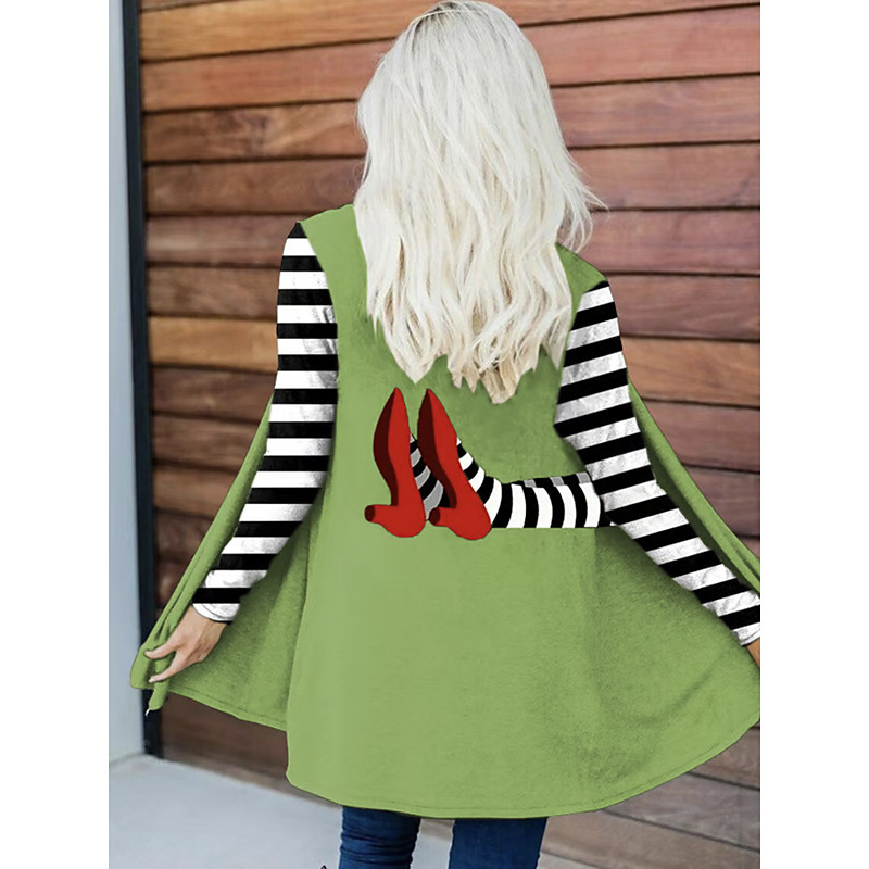 Women's Winter Coat Trench Coat Lightweight Comfortable Witch Print Open Front Vintage Fashion Casual Witch Vacation Casual Long Collarless Regular Fit Long Sleeve Outerwear Black White