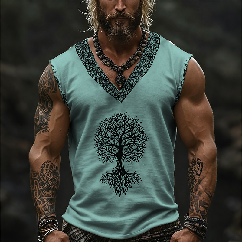 Men's Tank Top Vest Top Undershirt Sleeveless Shirt Sleeveless V Neck Summer Tree Vintage Designer Basic Print Vacation Street Going out White Blue Green Top Tee for Men