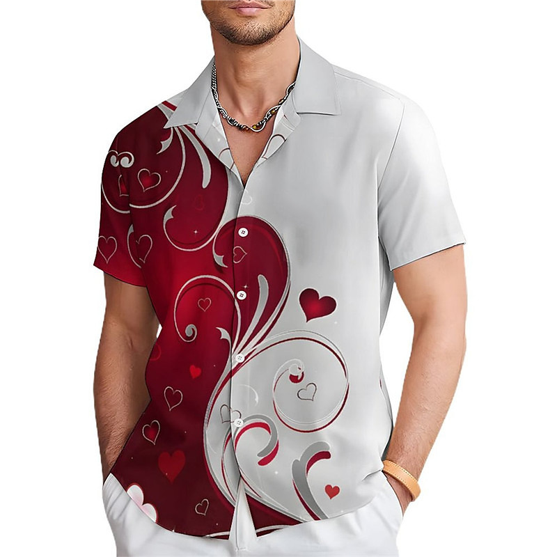 Valentine's Day Heart Casual Men's Shirt Daily Wear Going out Weekend Summer Turndown Short Sleeves Burgundy, Gray S, M, L 4-Way Stretch Fabric Shirt