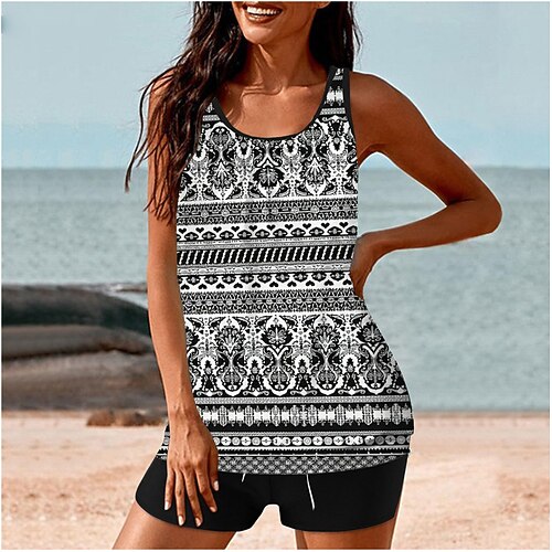 Per donna Costume da bagno Tankini 2 pezzi Geometrico Protezione UV Elastico Senza Maniche Costume da Bagno Costume da bagno Surf Immersione Nuoto Estate