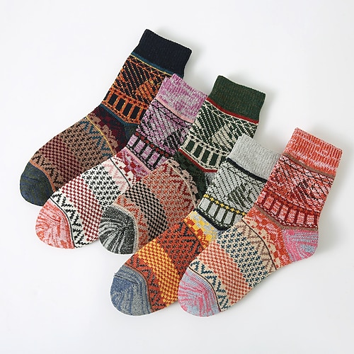 Calzini Calzini Sportivi Calzini divertenti Esercizio all'Aperto Camminata Bicicletta / Ciclismo Calore Termico Antivento 5 Paia Grafico Poliestere Nero Borgogna Blu Taglia unica