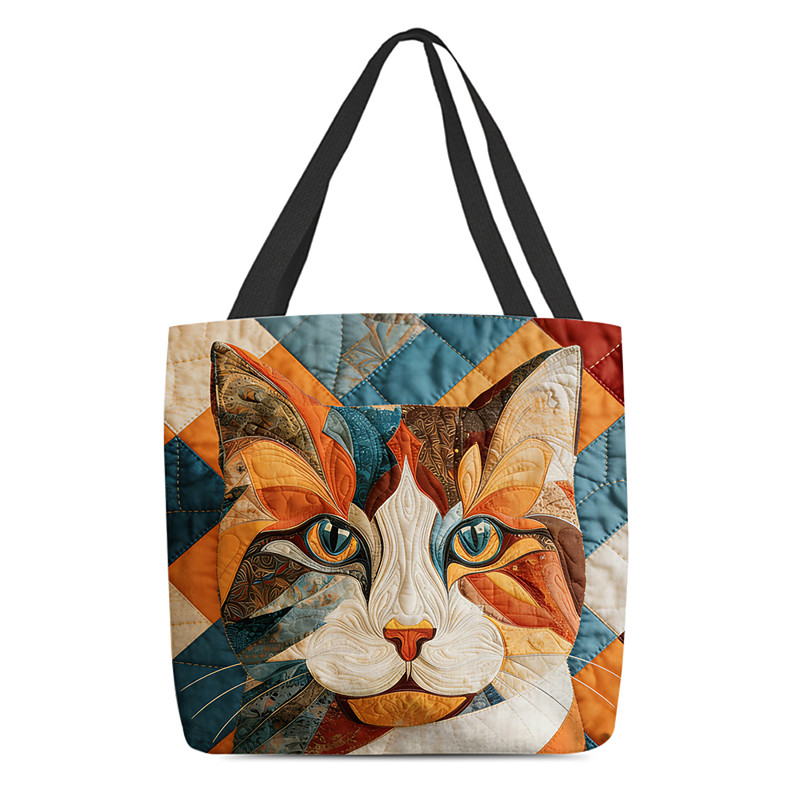 Women's Print Tote Bag with Colorful Cat Print, Multi-Color Design, Perfect for Everyday Use and Casual Outings
