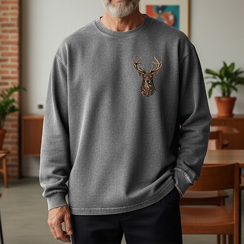 Per uomo Maglia Felpa con cappuccio invecchiata Aalbicocca Nero Rosa Verde militare Marrone Girocollo Renna Stampato Quotidiano Ferie Uscire 100% Cotone Vintage Retrò Casual Autunno Inverno