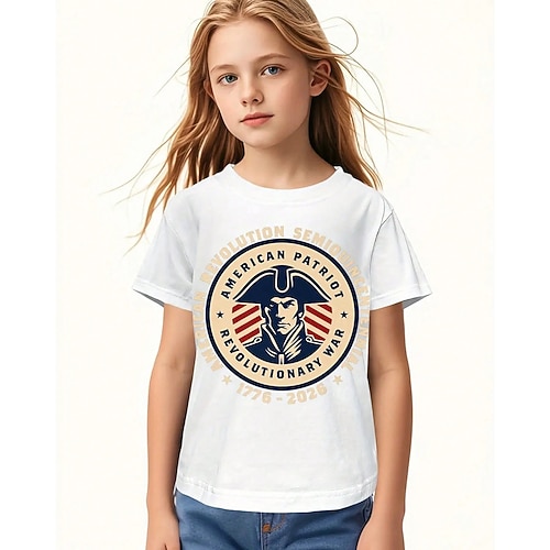 100% Cotone Bambini Ragazzi Nero Bianco Rosso Nave Bandiera USA 250° anniversario Maglietta Blusa Girocollo Manica Corta All'aperto Abbigliamento Quotidiano Moda Streetwear Designer Stampa Estate