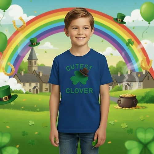 100% Cotone Giorno di San Patrizio Bambini Ragazzi Blu Nero Bianco Grafico Trifoglio Giorno di San Patrizio Maglietta Blusa Girocollo Manica Corta All'aperto Abbigliamento Quotidiano Moda Streetwear