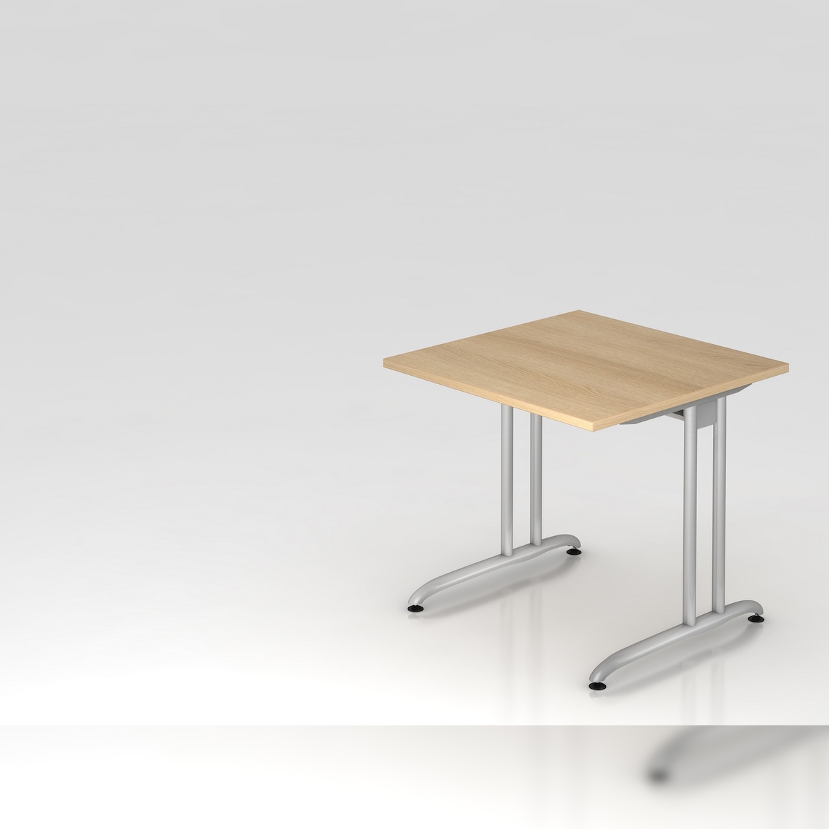 PROREGAL Schreibtisch Markku | Eiche | BxT 80x80cm | Arbeitshöhe 72cm | höhenjustierbar 0-10 mm | C-Fuß-Gestell Silber | Bürotisch