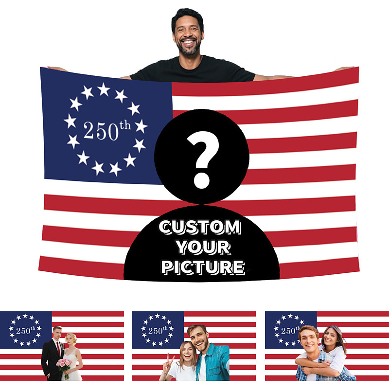 Custom 250th Anniversary American Flag with Photo Personalized Tapestry Poster Design Your Image For Decor Clubs Concerts Bars Dorms Living Rooms Bedrooms