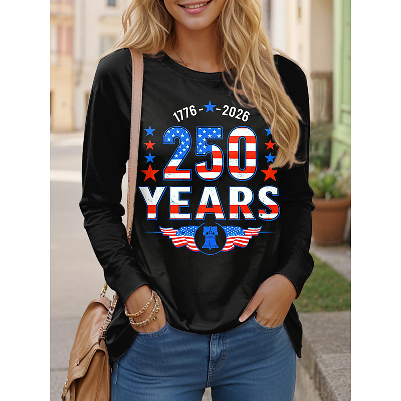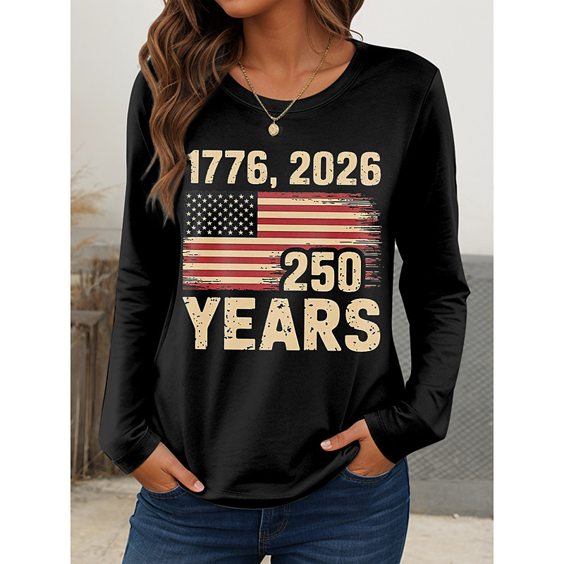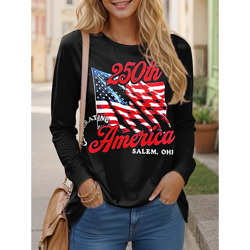 American 250th Women's Independence Day T Shirt Graphic Flag Stylish Casual Long Sleeve Crew Neck Regular Tops Daily Print Blue Black Spring Fall