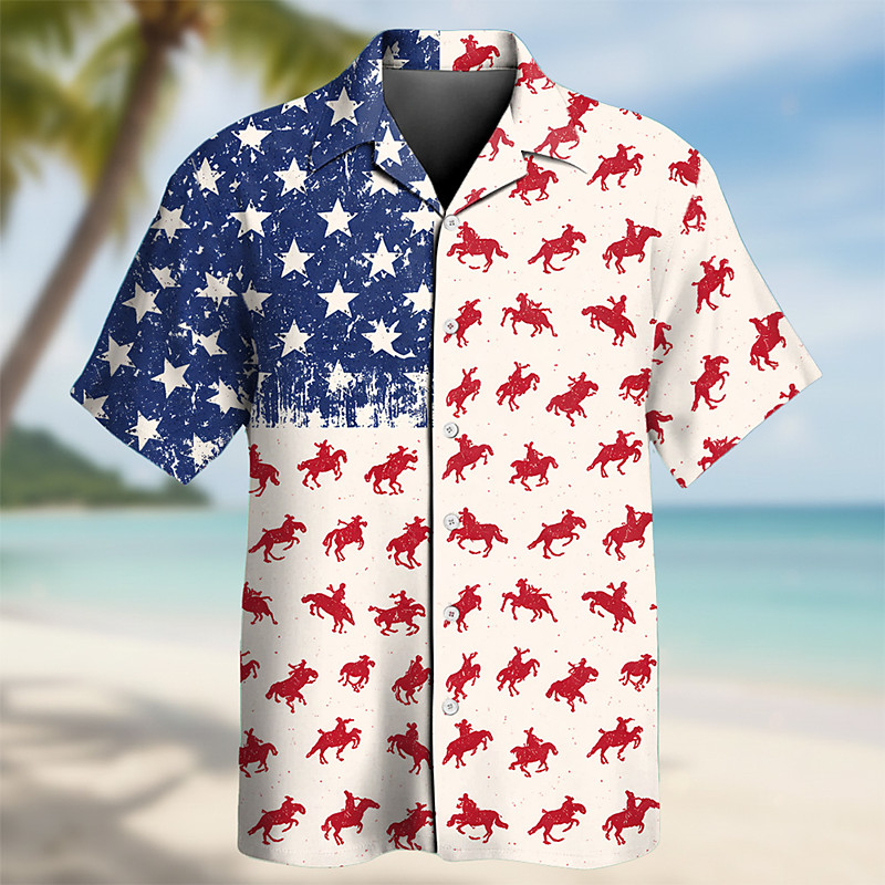 Men's US Flag Cowboy America's 250th Anniversary Shirt Button Up Shirt Short Sleeve Vintage Retro Outdoor Holiday Summer Spring Turndown 3D Print Collared Shirts Pink Beige