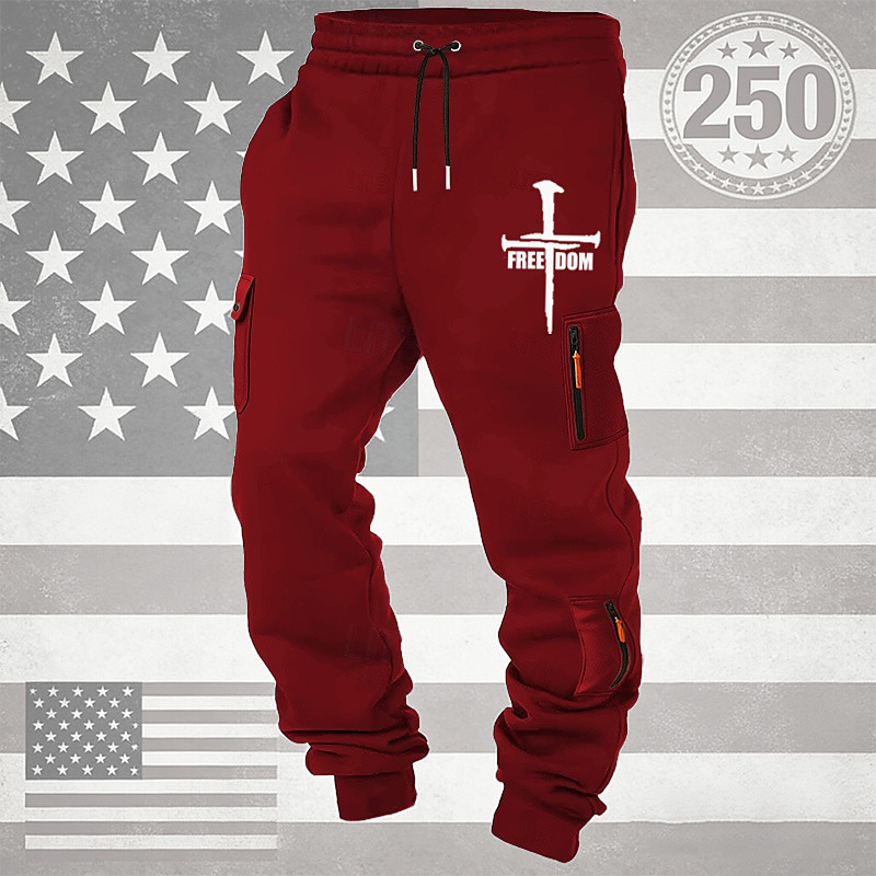 Men's Cargo Sweatpants Sweatpants Joggers Trousers Drawstring Pocket Elastic Waist Cross Comfort Breathable Daily Outdoor America's 250th Anniversary Vacation Fashion Black White Micro-elastic