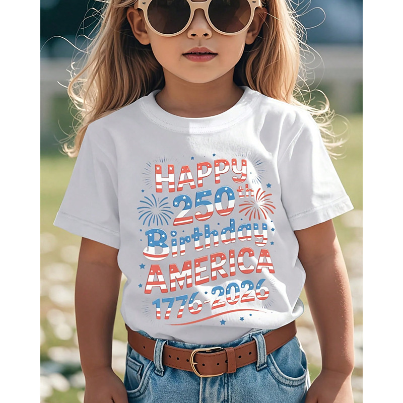 100% Cotton Kids Boys' Black White Graphic USA Flag 250th Anniversary T shirt Blouse Crew Neck Short Sleeve Outdoor Dailywear Fashion Streetwear Designer Printing Summer