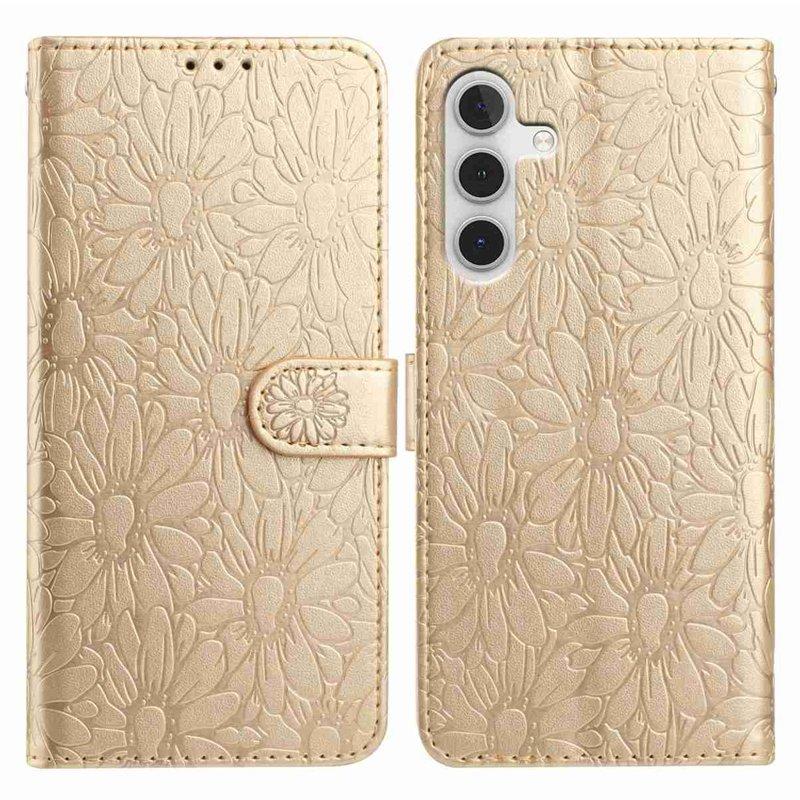Samsung Galaxy A55 5G Plånboksfodral Konstläder Daisy Prägling - Guld