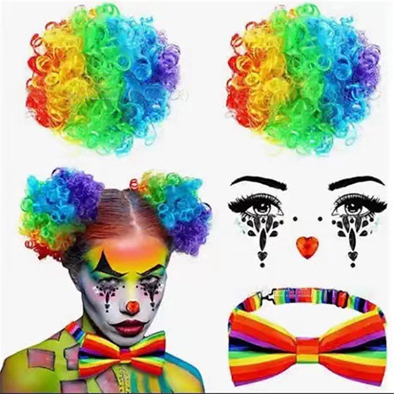 Carnival Wig Purple Green Yellow Afro Afro Curly Short Synthetic Festival Wig Mardi Gras Parade Cosplay Costume Hair for Women